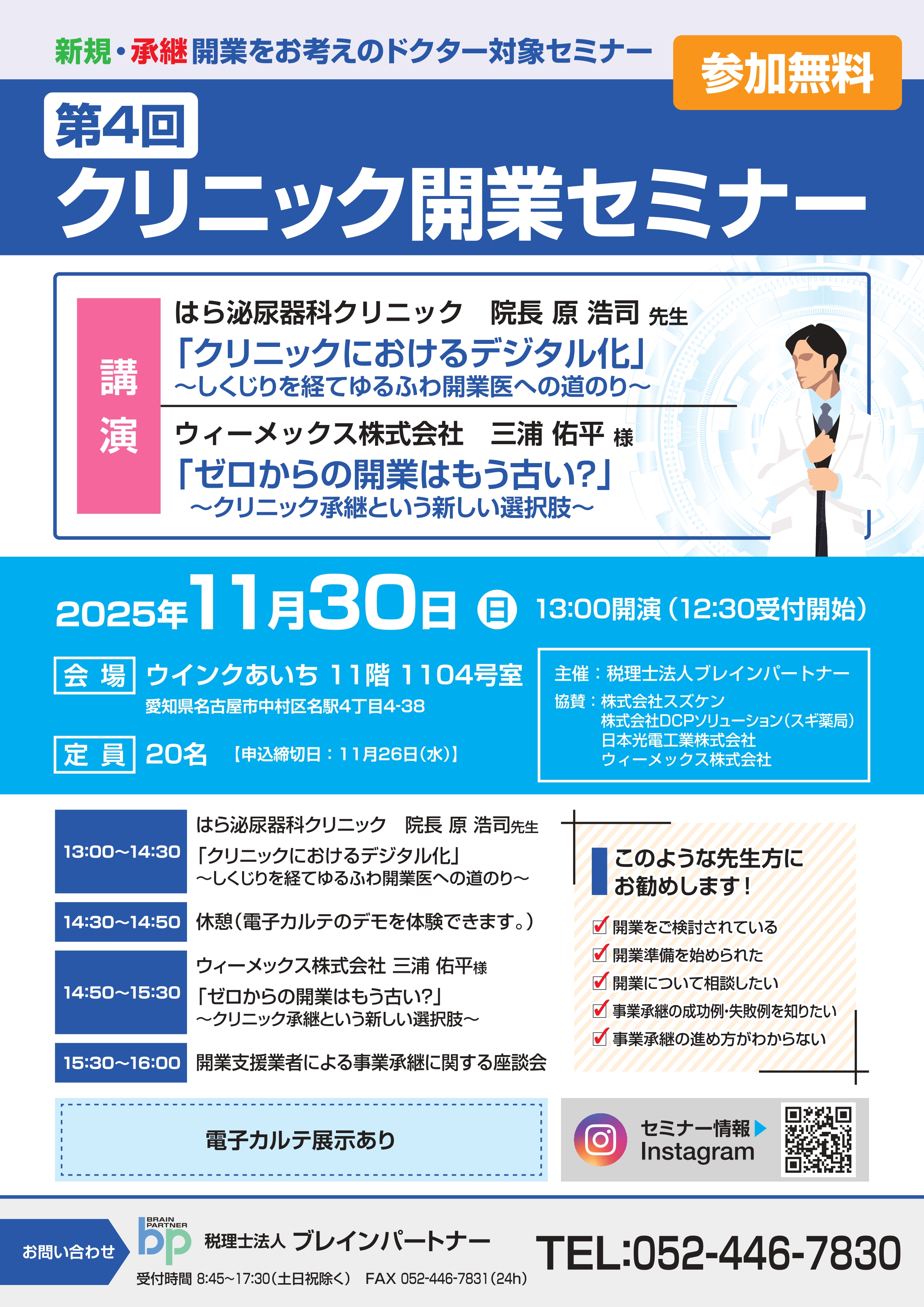 新規・承継開業をお考えのドクター対象のセミナーです。